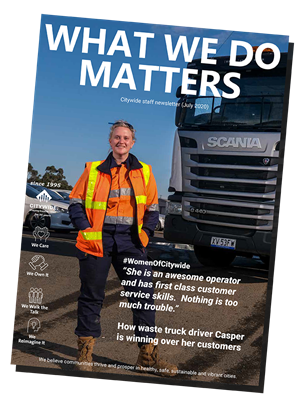 Today, Casper is not only in – she’s fast becoming a legend at Victoria’s largest waste transfer station, where she drives a 28-tonne-capacity hooklift truck, the biggest in the Citywide fleet.